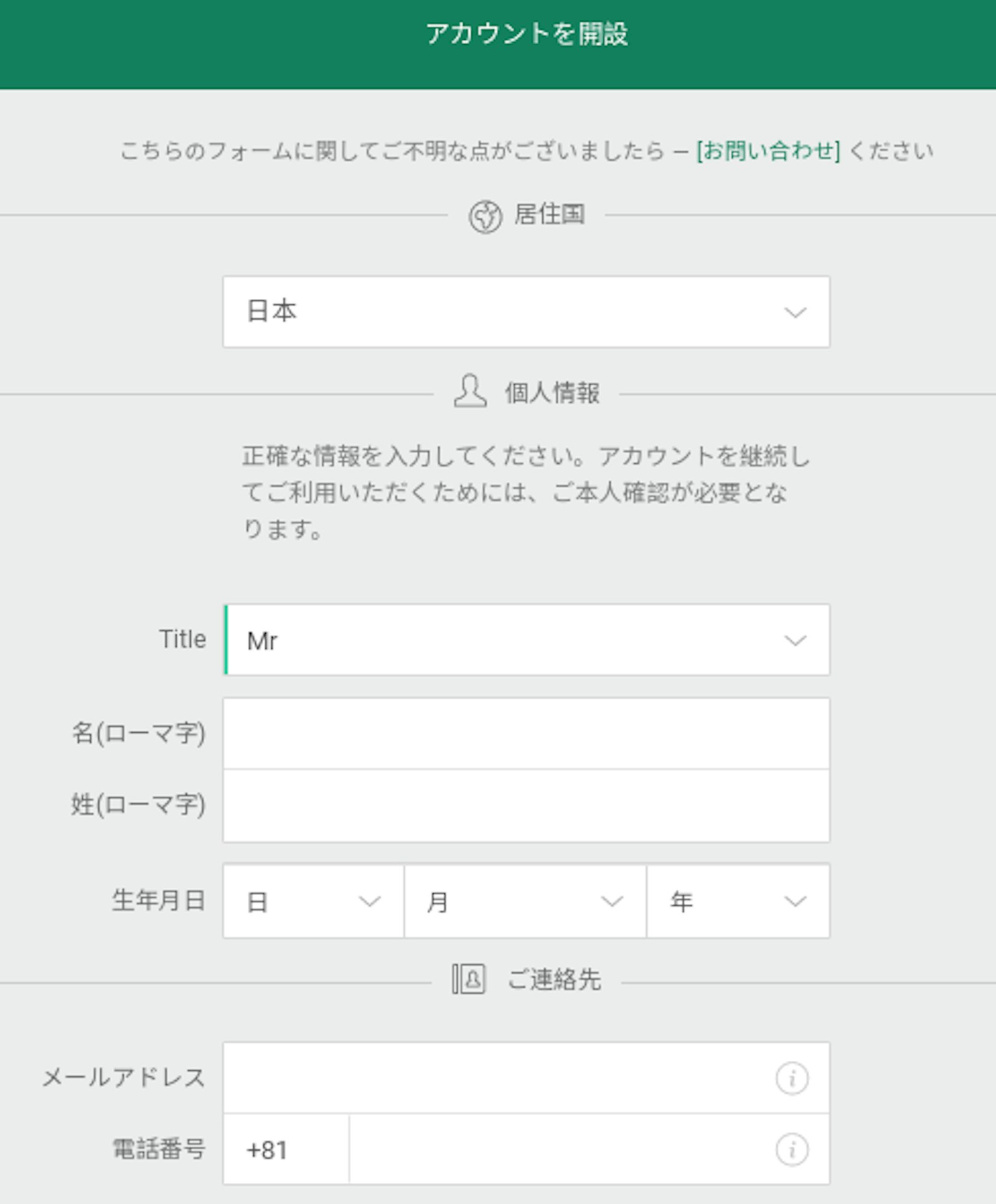 - Bet365の登録フォームに、ローマ字(半角英数字)で、居住国:日本、Title (男性はMr、女性はMs)、名前、苗字、生年月日、メールアドレス、電話番号(最初の0を除く)を入力します。
