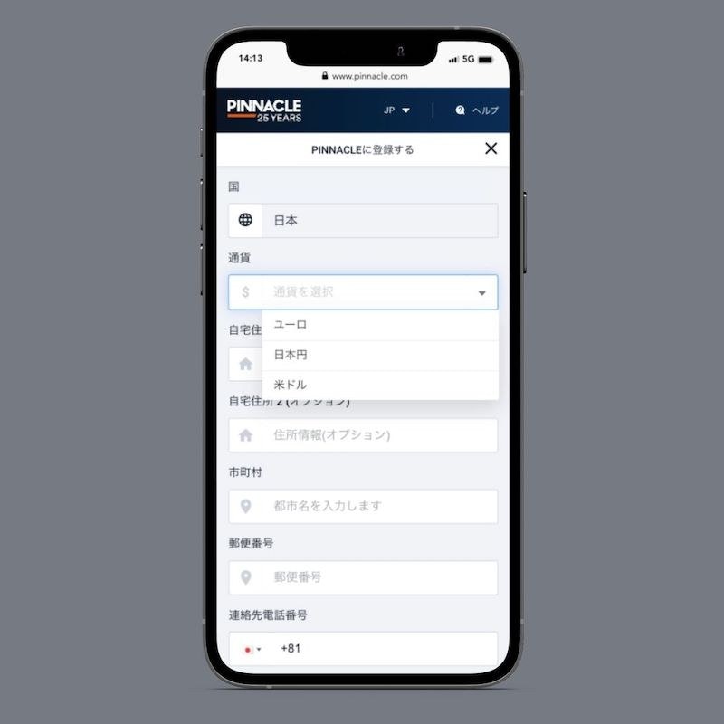 - 上の緑のボタンをクリックして、ピナクルカジノに登録する。